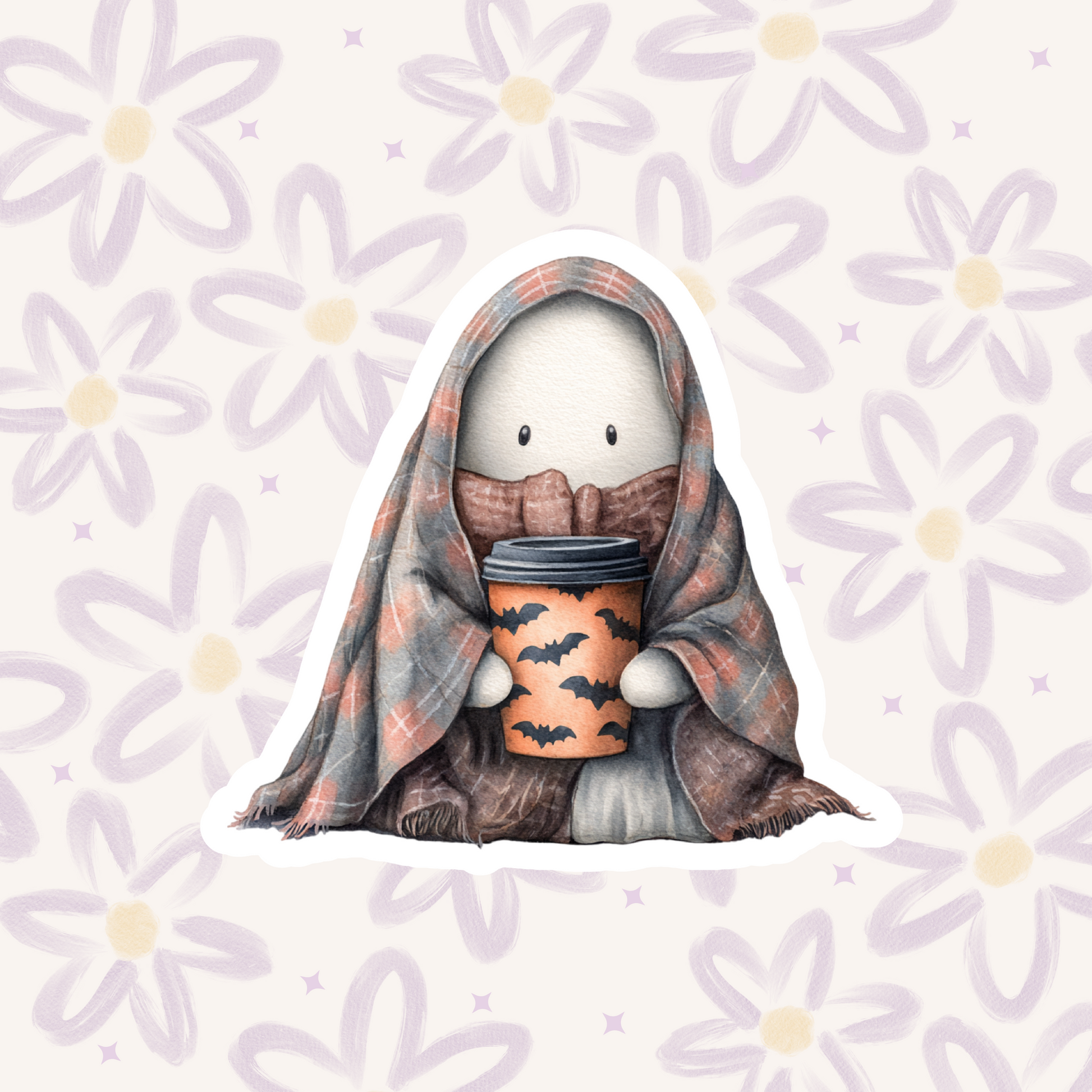 Cozy Coffee & Blanket Ghost Sticker STI-031