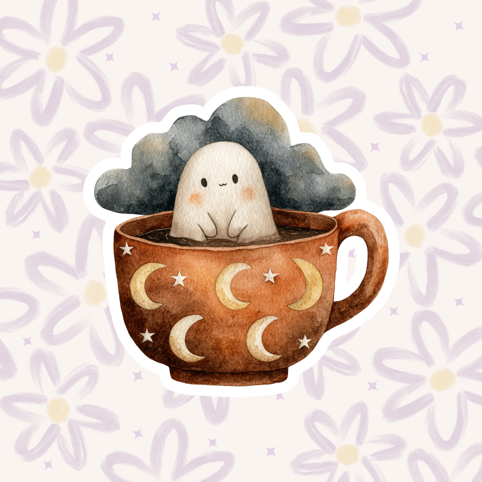 Crescent Moon Ghost Mug Sticker STI-028