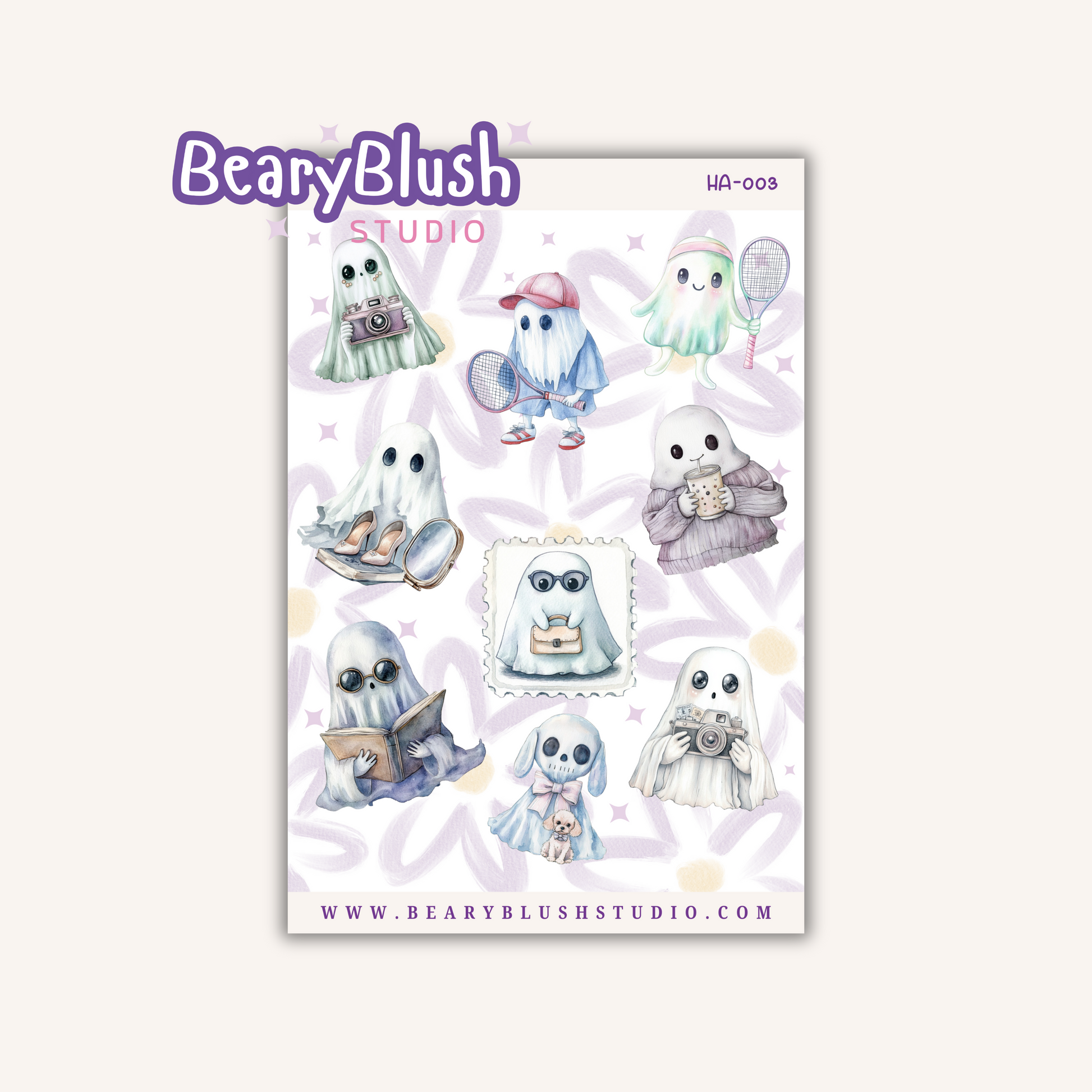 What do ghosts do in their free time? Everything! This Everyday Ghosts sheet features adorable ghosties reading, playing sports, sipping drinks, and taking selfies. A sweet, quirky addition to your planner or bullet journal.