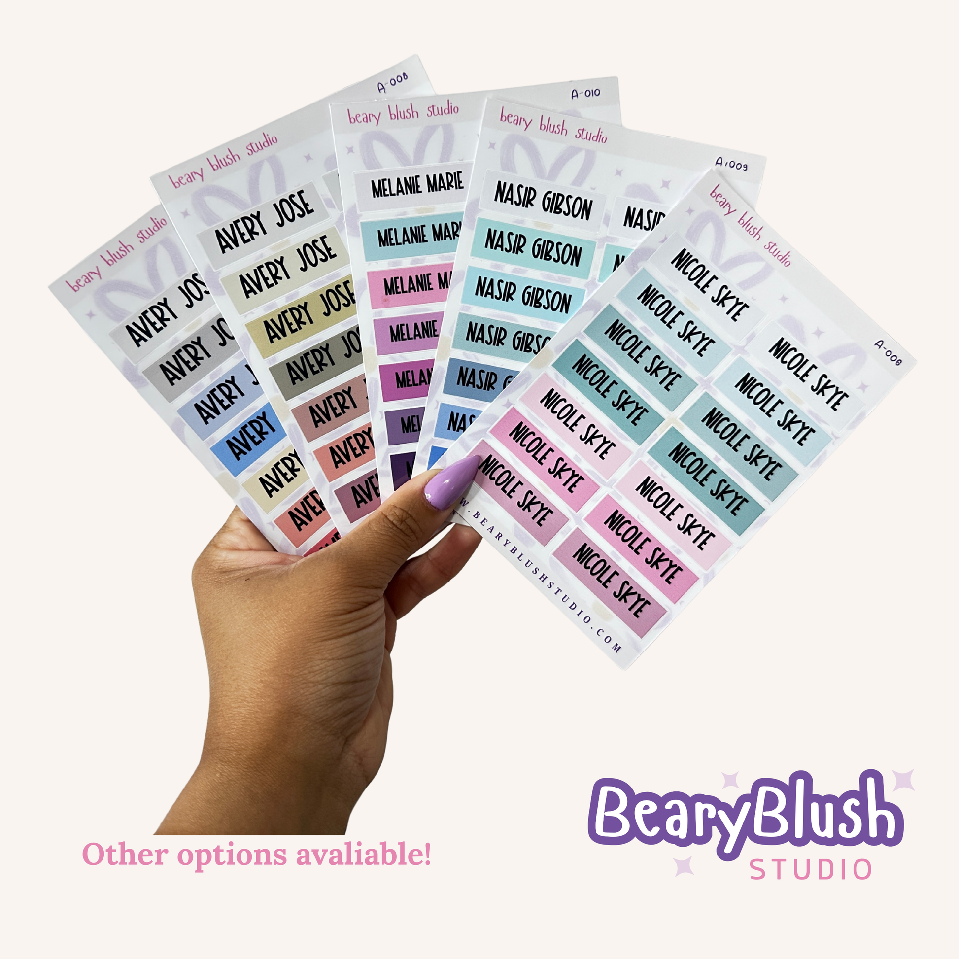 Each sheet features a clear name label, making it easy to personalize your items, whether for school, sports gear, or crafts.