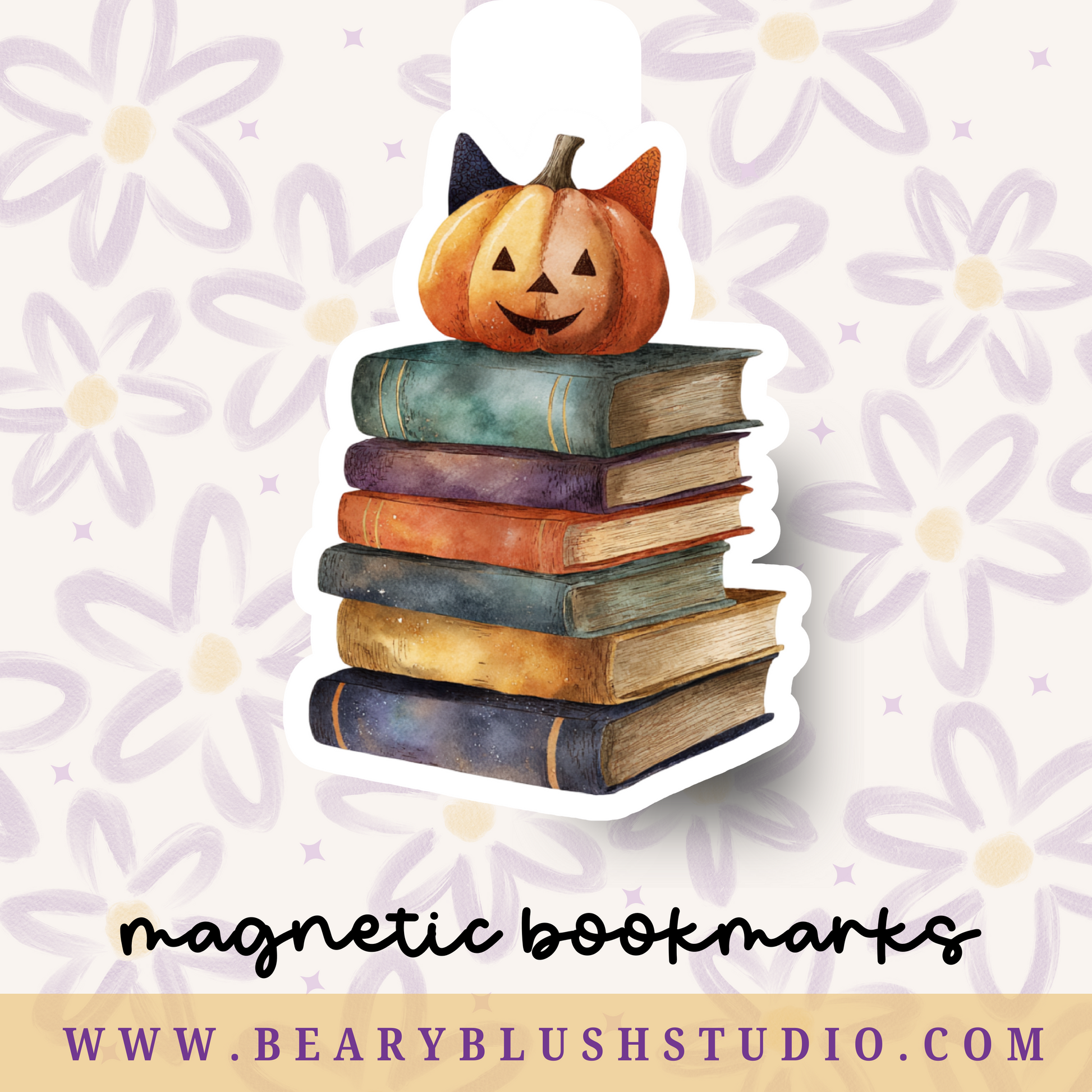 ✨ Pumpkin Cat on a Stack of Books Magnetic Bookmark ✨